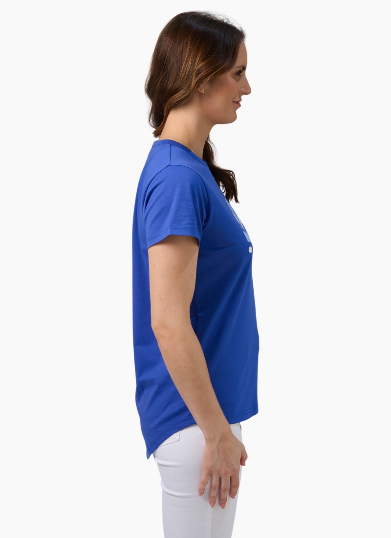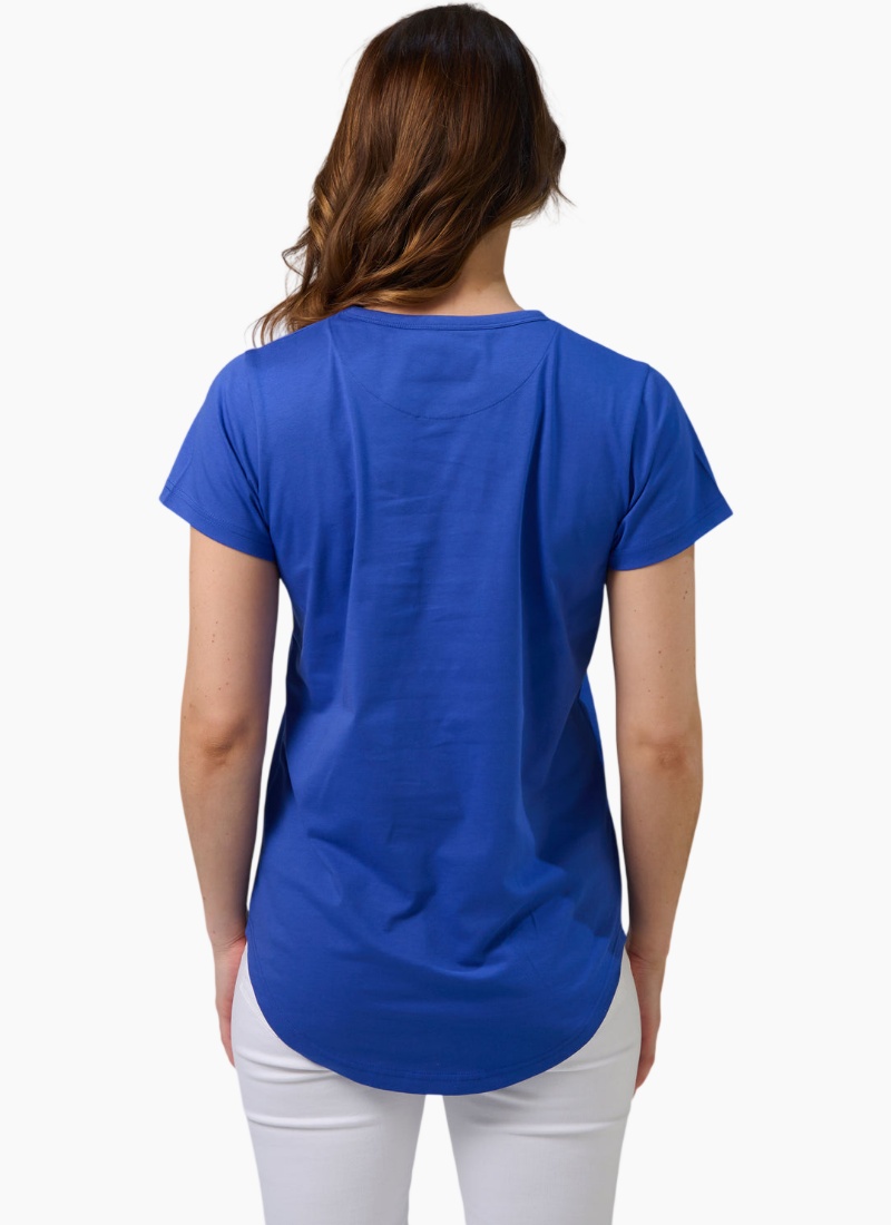 - Electric Blue from Stella + Gemma. This lively electric blue tee is a wardrobe essential, cut from soft cotton jersey for comfortable, all-day wear.
