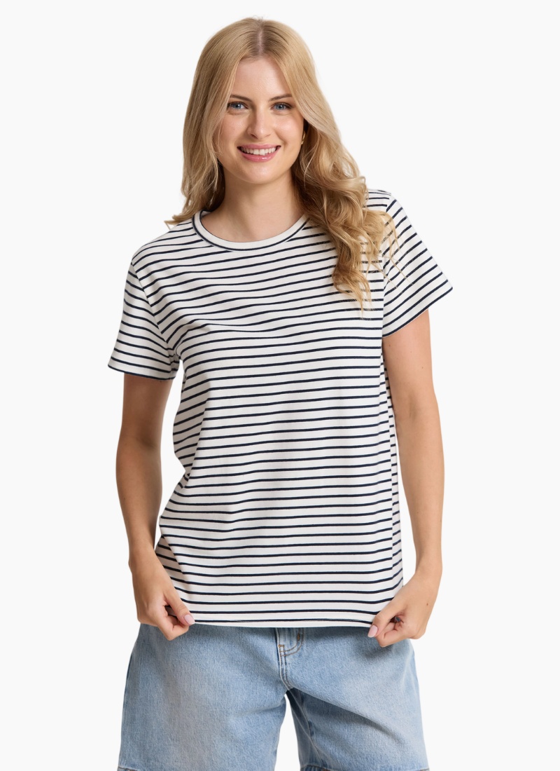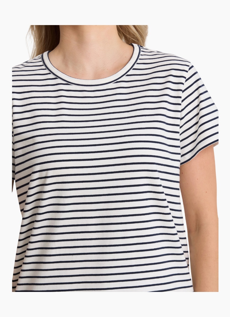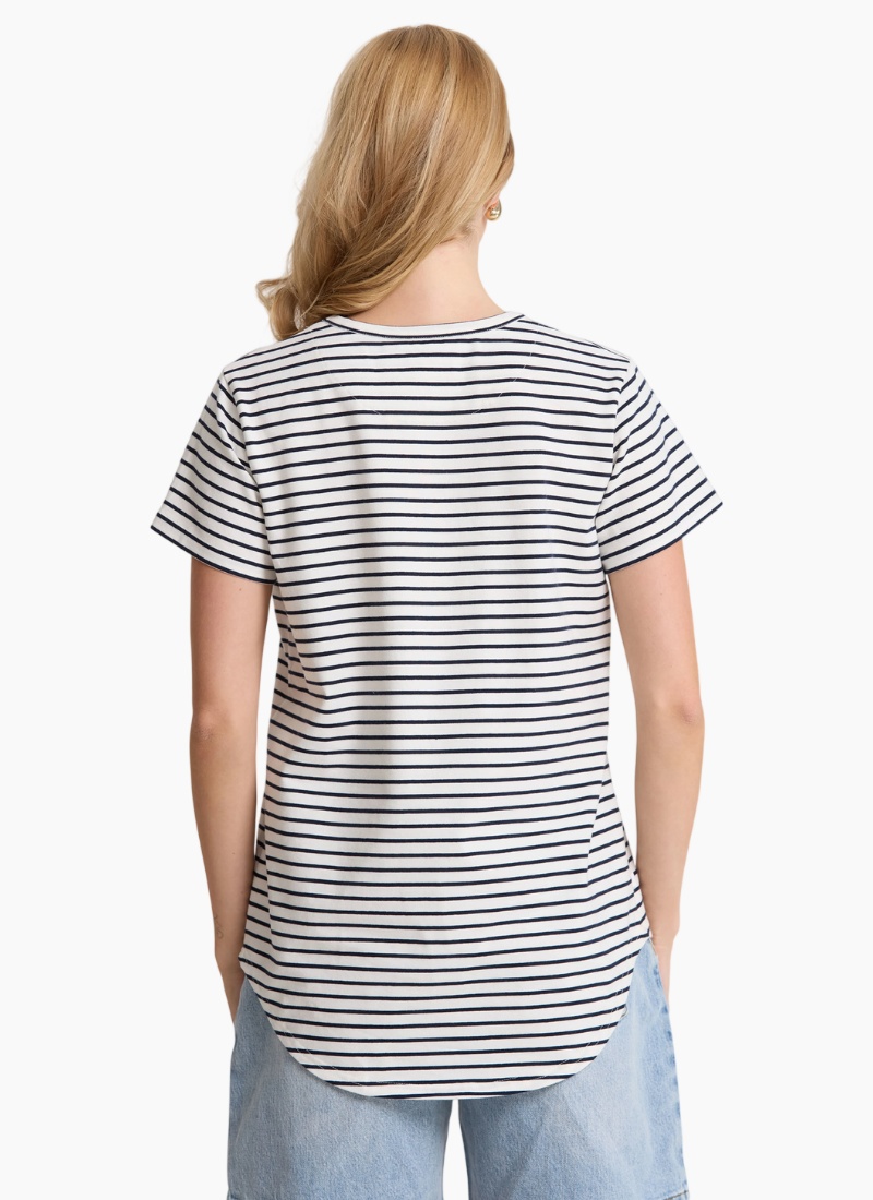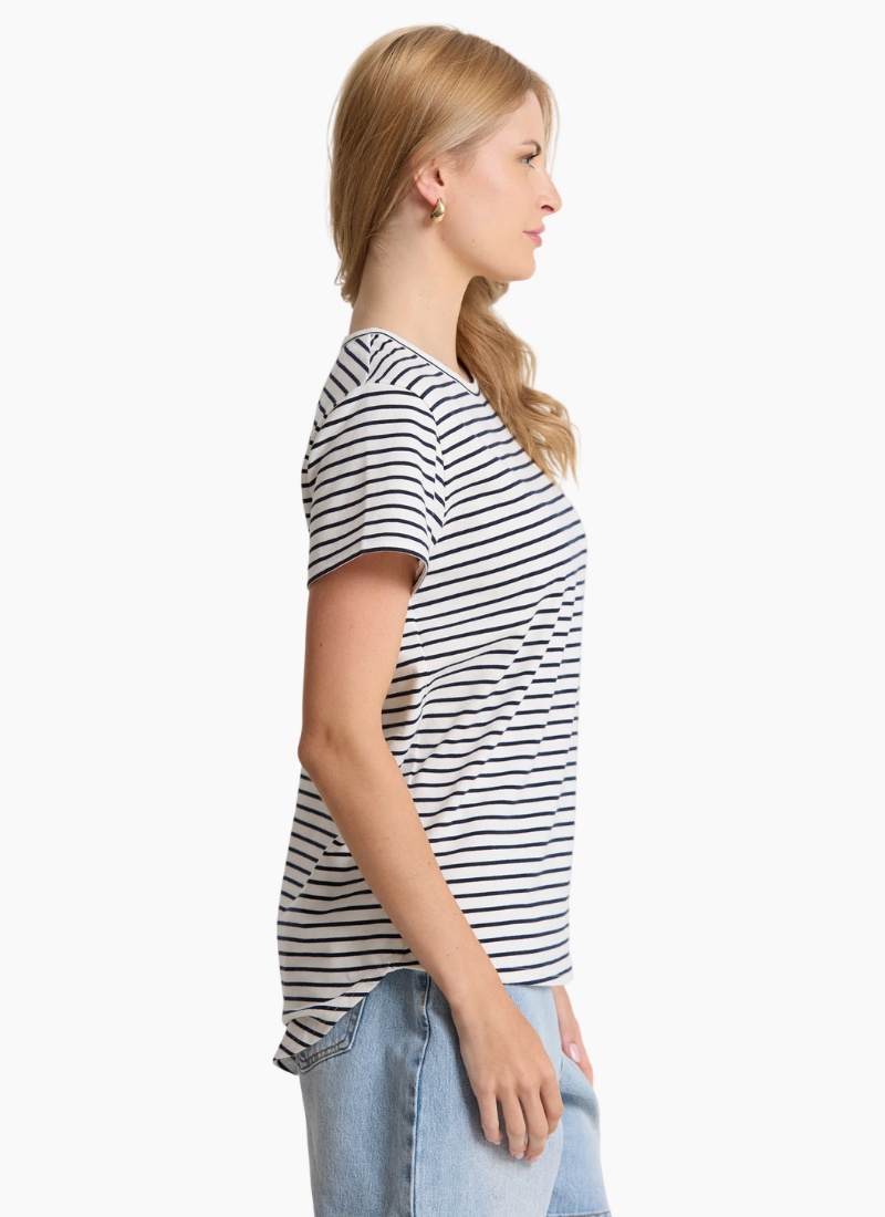 - White/Navy Stripe from Stella + Gemma. This timeless piece offers crisp nautical style and everyday comfort.