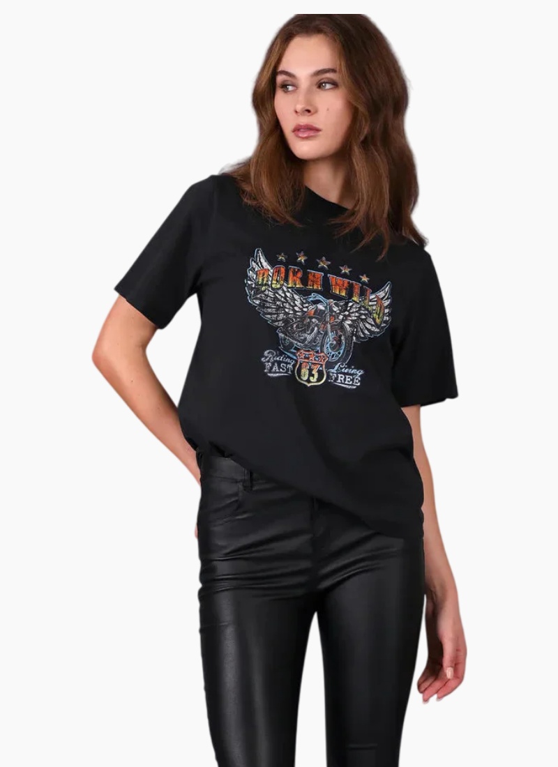 Introducing the STORM Born to Be Wild Tee from Storm NZ. This vintage black graphic tee blends laid-back attitude with effortless style.