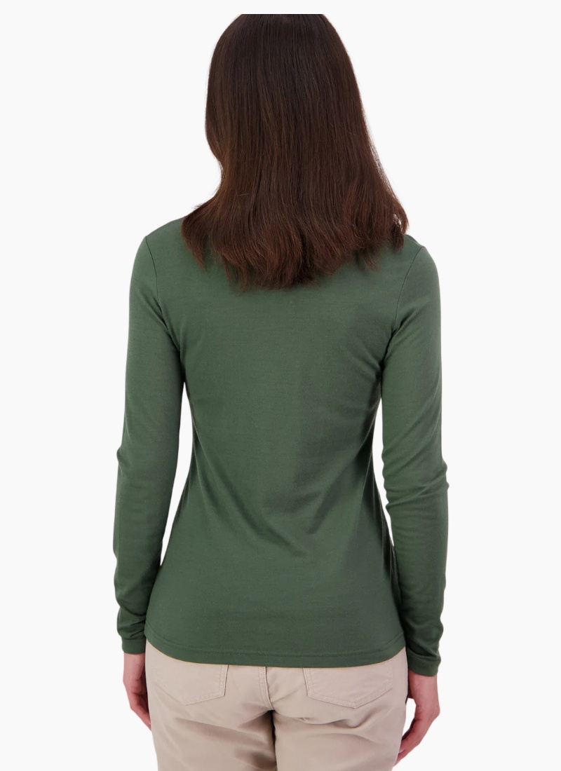 The Women's Cass Long Sleeve Merino Top in Olive brings a more outdoorsy colourway to a reliable merino base. With all the natural temperature-regulating benefits of merino, it keeps you comfortable across changing conditions and layers easily without adding bulk. It's a straightforward, hard-working piece that feels good against the skin and earns its place through sheer usefulness.