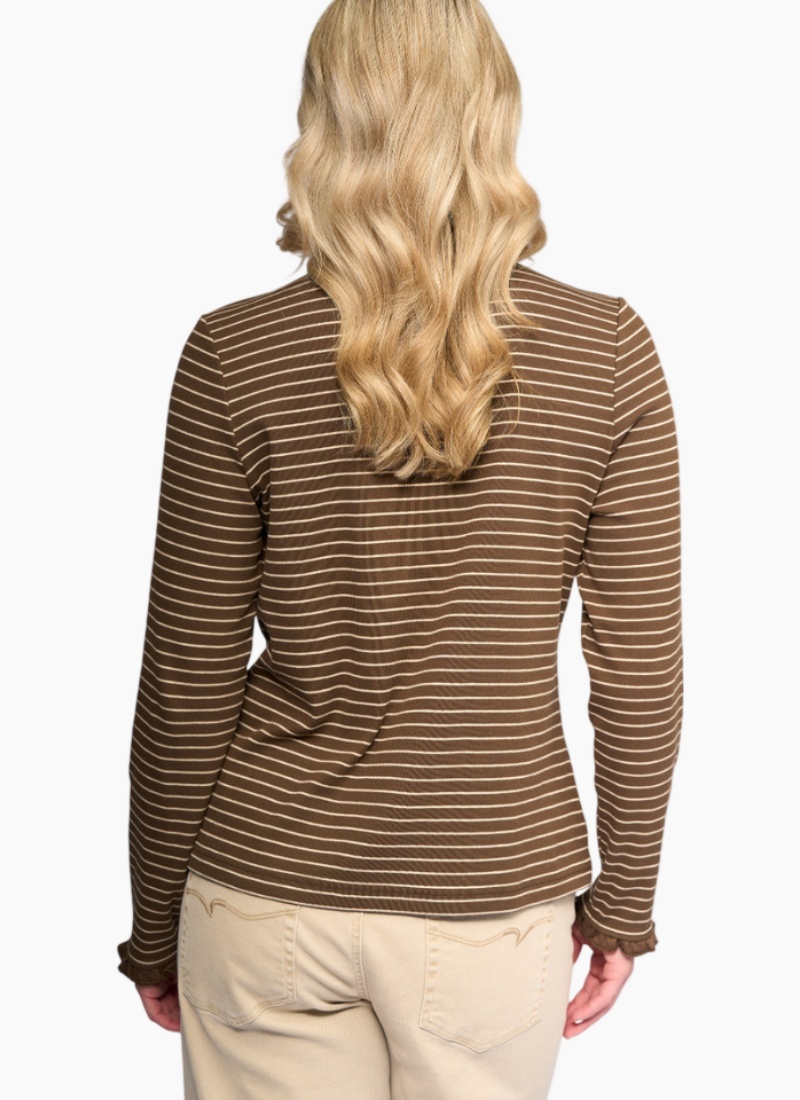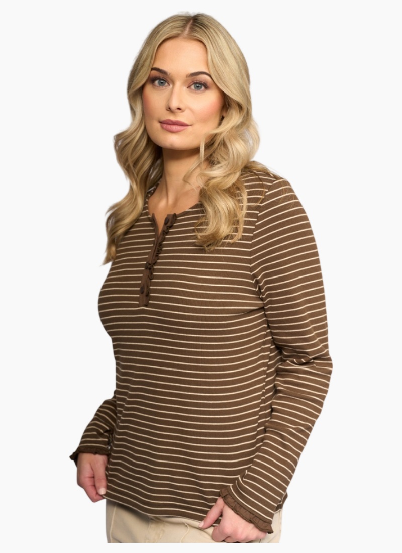 Introducing the Field Top - Chocolate/Oat from Vassalli. A versatile Tops piece in rich chocolate and oat stripes, crafted for everyday comfort and effortless style.