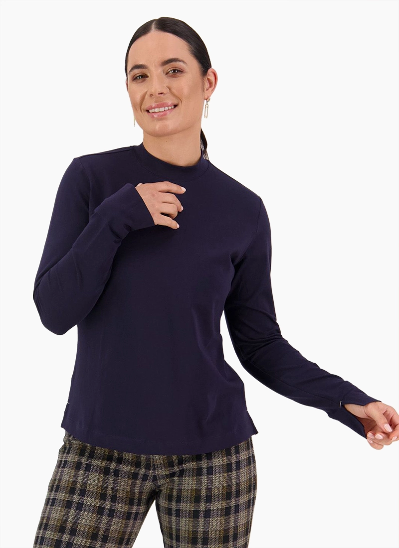 HIGH NECK TOP WITH SIDE SPLITS IN LUX HEAVY WEIGHT STRETCH COTTON